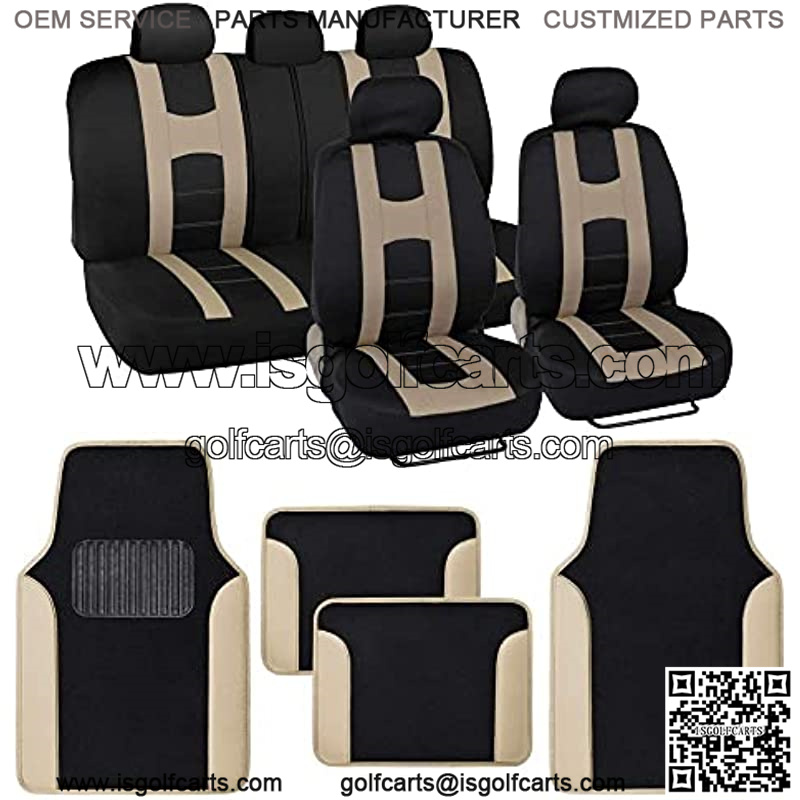 Rome Sport Beige Car Seat Covers Full Set Combo with Floor Mats ?C Front and Rear Car Seat Cover and Floor Mat Set, Interior Protectors with Two-Tone Accents, Fit for Auto Truck Van SUV.