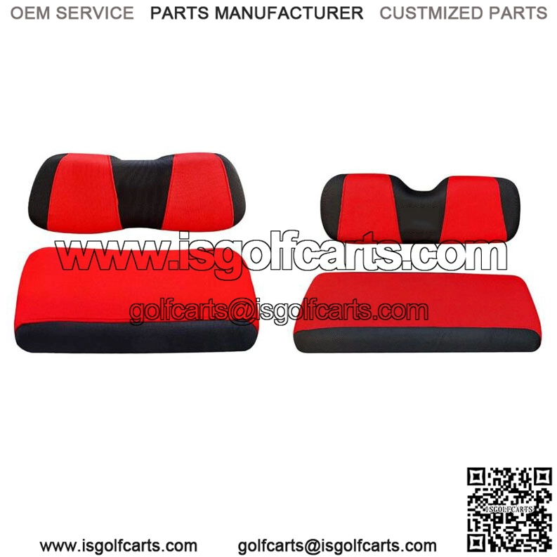 Warm reminder: Only fit for 2 passenger Club Car DS, EZGO RXV TXT Golf Carts with Rear seat much smaller than front one. Thank you! (This golf cart seat cover is for S + XS size) * S size:Seat cover: 39.76inch(L) * 19.68inch(W)*3.94inch(H); Back cover: 36.6inch(L) * 9.5inch (W)* 3.74inch(H)* XS size: Seat cover: 37.5inch(L) * 13.5inch(W)*3.7inch(H); Back cover: 35inch(L) * 9.5inch (W)* 3inch(H)* Made with breathable washable polyester mesh cloth, keeps the seats cool in the summer heat and warm in the winter;* Golf cart seat cover extends the life of older or damaged seats, keeps your seat clean, free of dirt, dust, scratches and spills;* In Two-Tone ( Red+Black) which looks very stylish, renew your golf cart seat;* Easy to Install and Stay Dry, Toolleadjustable straps and retractable buckle design help you install easily and remove in minutes;* Easy to clean, just throw it in the washing machine and air dry, folds easily for packing, lightweight;* Best Gift for DEDICATED GOLFER,GOL