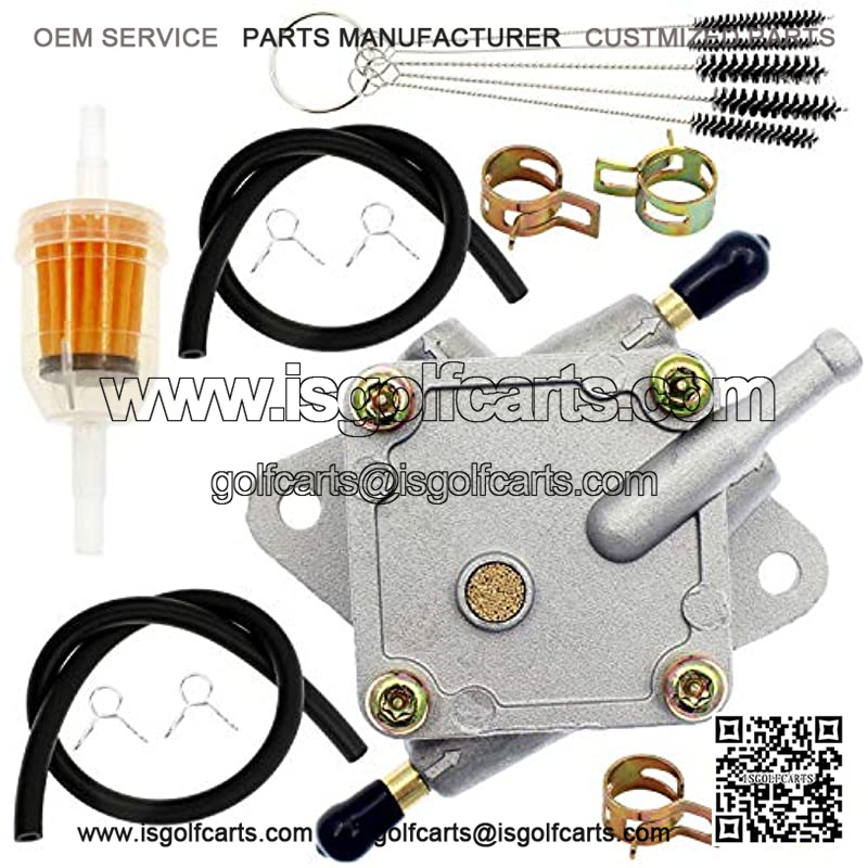 Features: New high-quality fuel pump. Compatible for EZGO 2-cycle golf cart gas club car 1990 1/2 thru – 1993. Replacement part number: 25294G1, 25294-G1. Aftermarket part number: S5146, S-5146. Bring your golf cart up to optimum operating condition fast! Dimensions: Size: 104mm x 50mm x 27mm / 3.41inch x 1.97inch x 1.06inch (L*W*T). Hole distance: 71mm / 2.81inch. Hole diameter: 7mm / 0.28inch. Package included: 1 x fuel pump. 1 x cleaning brush. 1 x fuel filter. 2 x fuel lines. 8 x clamps.