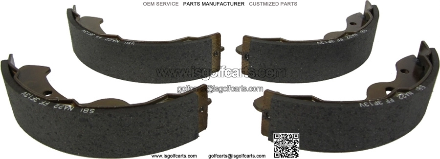 Replacement brake shoe set for new Bendix. For Gas and Electric 1993-up, G14,G16, G19, G22, golf carts. (4/Set)
