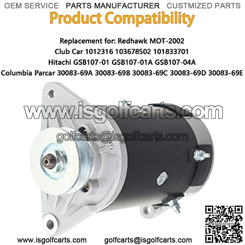 Alta calidad, muy duradero, buen estado de trabajo, f??cil de instalar.N??mero de pieza de recambio: 1012316 30083-69A 3008369A 3008369B 30083-69C 30083-69D GSB107-01 GSB107-01A GSB107-04A MOT-2002.Voltaje: 12 V Campo HSG OD: 4.461 pulgadas.El paquete incluye: 1 generador de arranque.Compara tu pieza con las im??genes y aseg??rate de que esta pieza se ajusta a tus modelos antes de comprar. Descripci??n del productoEspecificaciones: Condici??n: 100% nuevo y nunca utilizado N??mero de pieza de repuesto: 1012316 30083-69A 3008369A 3008369B 30083-69C 30083-69D GSB107-01 GSB107-01A GSB107-04A MOT-2002. Contenido del paquete: 1 generador de arranque. Compatible Repuesto para Club Car 1012316 103678502 101833701 Repuesto para Redhawk MOT-2002. Repuesto para Hitachi GSB107-01 GSB107-01A GSB107-04A. Repuesto para Columbia Parcar 30083-69A 30083-69B 30083-69C 30083-69D 30083-69E Nota: Comprueba las im??genes para m??s detalles antes de comprar, para evitar que compres gastos innecesarios e innecesarios.