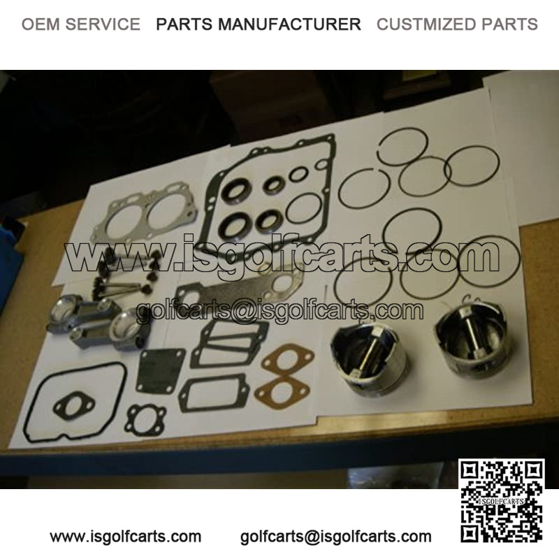 NEW GOLF CART ENGINE REBUILD KIT WITH GASKETS. KIT IS FOR ALL 1996-2002 PRE MCI 350cc ROBINS ENGINES. KIT HAS EVERY ENGINE SEAL AND GASKET NEEDED FOR A TOTAL REBULID, TWO STANDARD PISTON & RING KITS AND TWO CONNECTING ROD ASSEMBLIES.