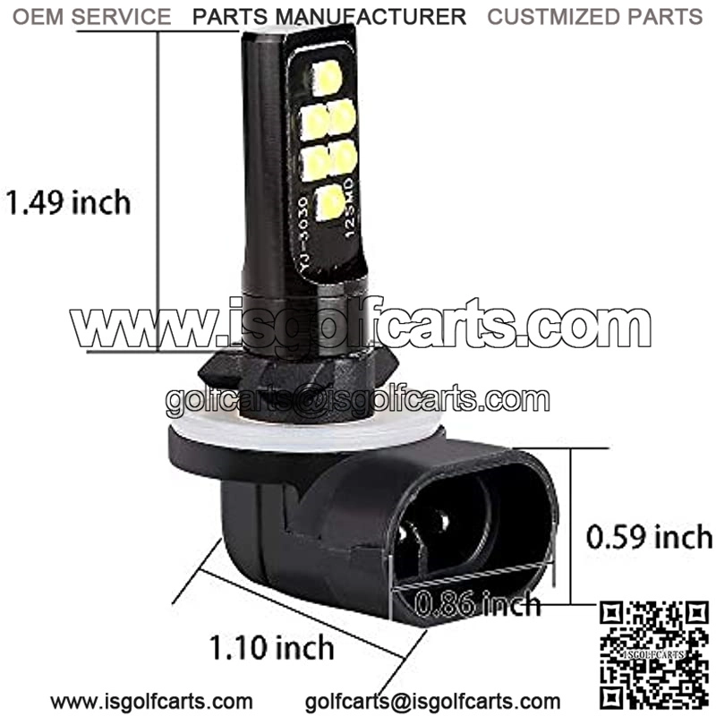Super bright white light, 12SMD 3030 LED, OEM/factory headlights or fog light replacement bulbs, includes 2 bulbs Fits EZGO 1994+ golf cart OEM/factory light Fits Club Car DS 1999+ golf cart Fits Club Car Precedent 2004+ golf cart 12V operating voltage, plug & play installation – just plug it in the socketProduct Description Golf Cart 12V LED Light Headlights Bulb for EZGO 1994+, Club Car DS (1999+) and Club Car Precedent (2004+), Pack of 2