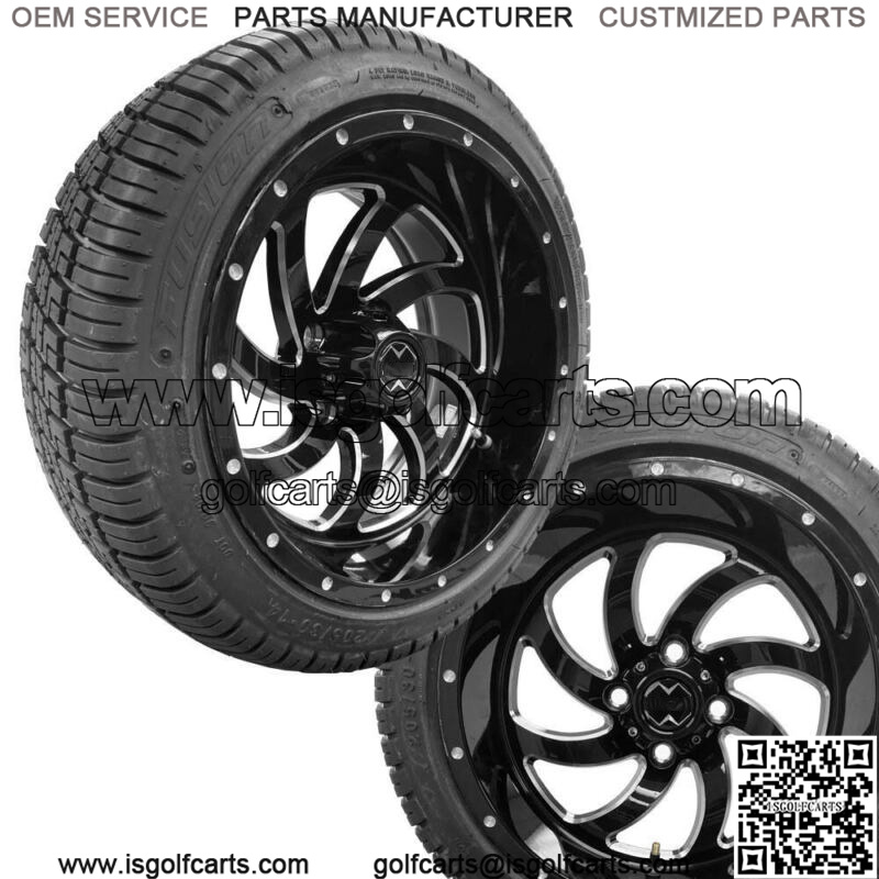 Golf Cart 14″ Phantom Glossy Black Wheels on 205/30-14 Tires * 2 Year Warranty