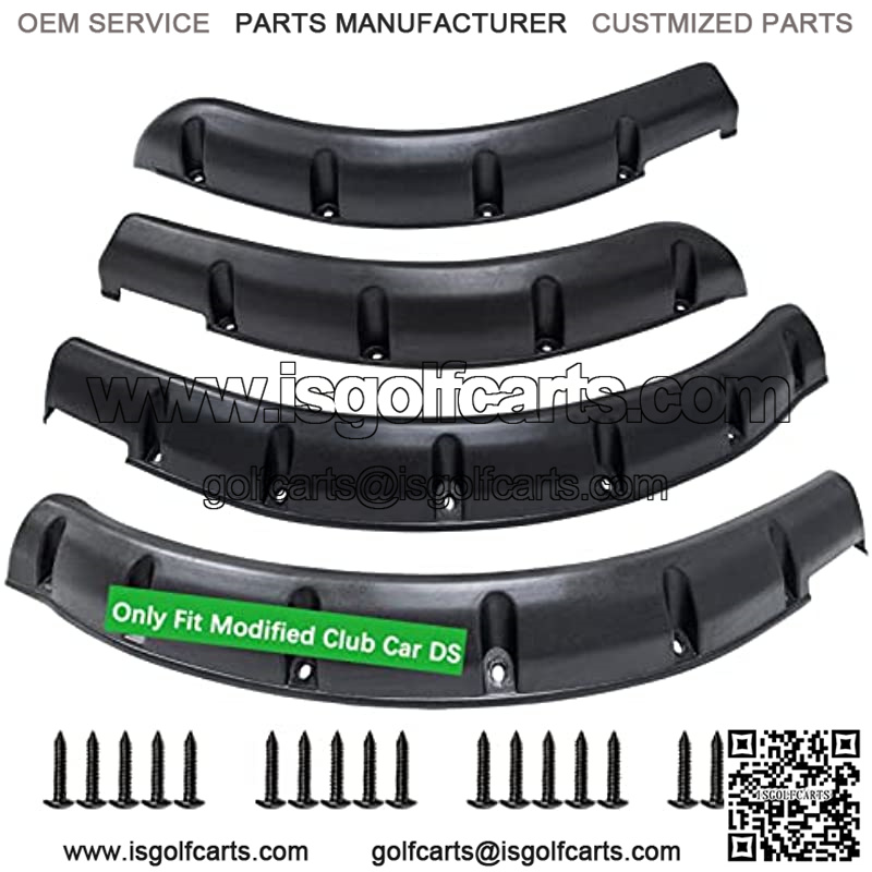 Club Car DS fender flares included 4pcs, golf cart fender flares for front and rear wheels.Stainless Steel Screw kit included.