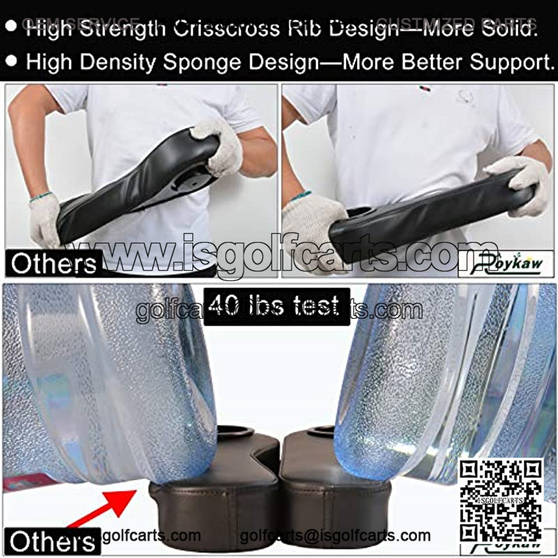 Upgrade Golf Cart Armrest with Cup Holder – Universal fit for almost all golf carts rear seats, EZ-GO/Club Car/Yamaha.Upgrade set of 4 stainless support frame ( 2 PCS each side ), Not easy to tilt or broken. More sturdy,stable and durable.About the support frame: Integrated construction and no extra screws required. Not easy to loosen over time. Easy installation and more strength than split type.Upgrade high strength crisscross rib design. More stronger torsion resistance.Upgrade high density sponge design. More durable and more better support.