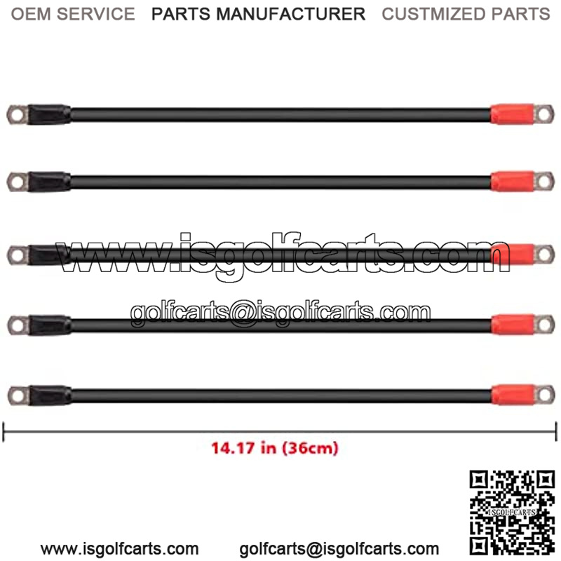 This Club Car Battery Cables:(5) 14.17inch cables included, 5/16 Copper Lugs and 4 Gauge welding cable.
