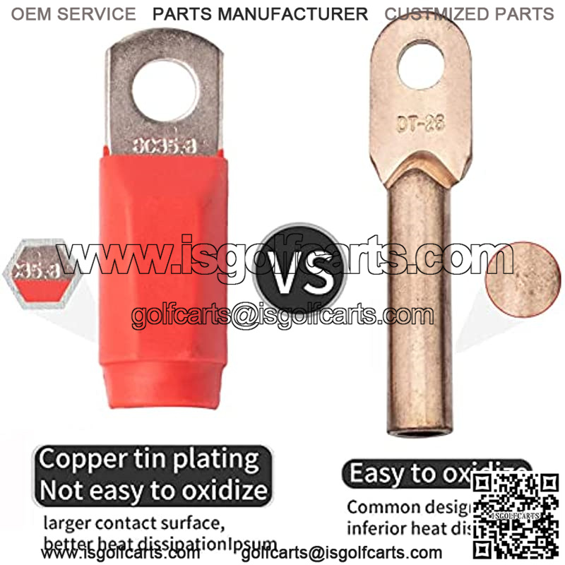 Golf Cart Battery Cables: Copper cable lugs are tinned coated and utilize a closed end design for corrosion protection.