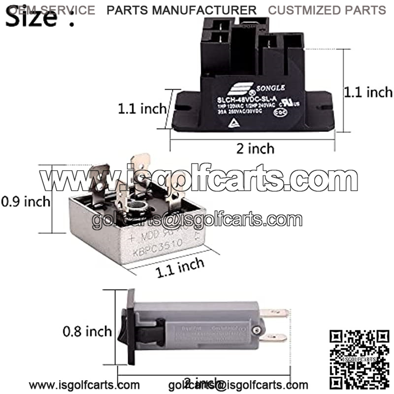 Golf Cart Battery Charger Repair Kit for Club Car 30A DC48V Powerdrive 1 & Powerdrive 2, Include Rectifier & Relay & Circuit Breaker OEM# 17930/22110