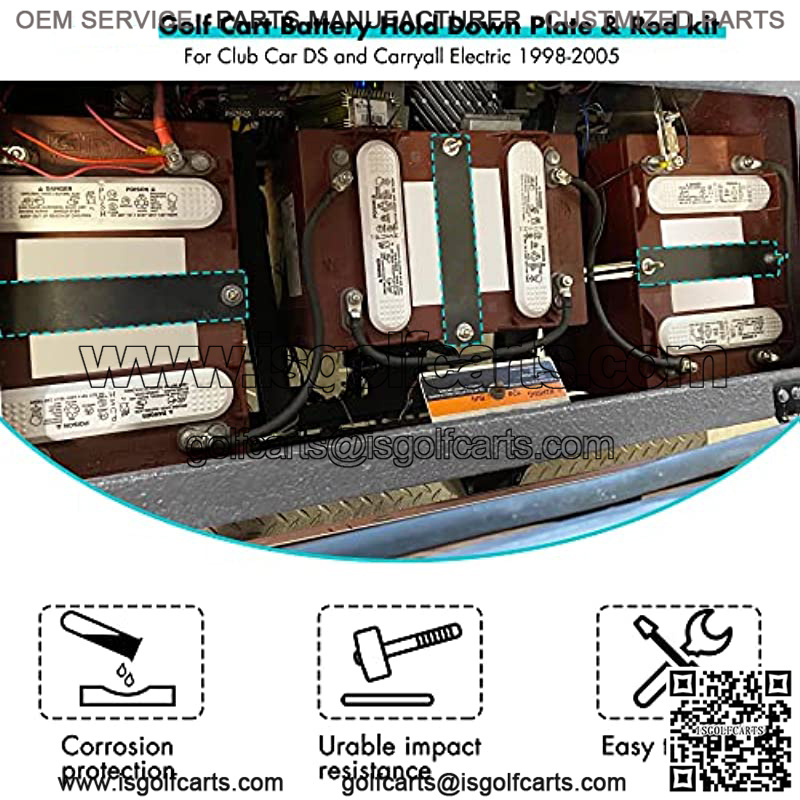 Golf Cart Battery Hold Down Plate with rod kit for Golf Cart Club Car DS and carryall electric 1998-2005;