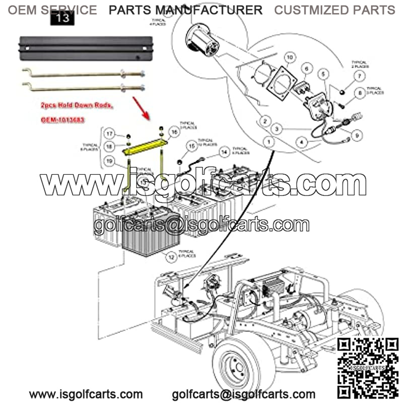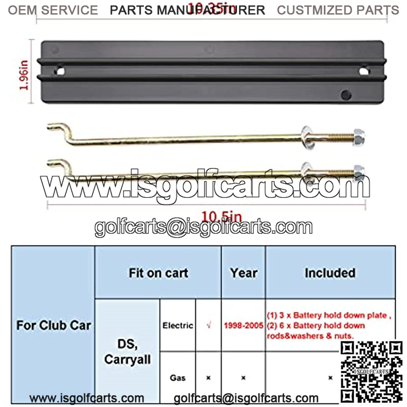 3pcs Battery Hold Down Plate, Replaces club car OEM:101090801. 6pcs Hold Down Rods, Replaces club car OEM:1013683.