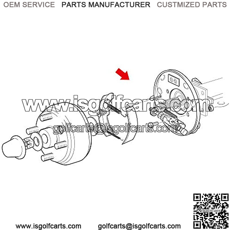 Complete brake assembly kit for EZGO TXT & Yamaha G14-G22 golf cart, direct replacement without adjusting the brake spring Fits EZGO TXT & Medalist 1996-up gas and electric, Yamaha G14 G16 G19 G20 G21 G22 1993-up gas and electric OEM part number: 70998-G01 70998G01 left (driver side), 70998-G02 70998G02 right (passenger side) Includes brake backing plate cover, brake spring kit(upper & lower spring, adjuster springs, cup spring with pin), brake shoes (70794-G01) with retainers, brake adjuster kit (72582-G01, 72582-G02) Provide 100% satisfaction guarantee, 1 year refund or replacement!