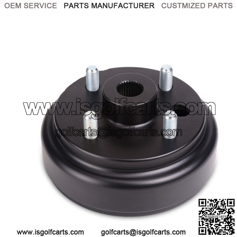 Rear wheel brake drum/hub assembly, 4 lug gas, large hole, fine spline, replaces OEM part numbers EZGO 21807G1, Columbia 41843-94;