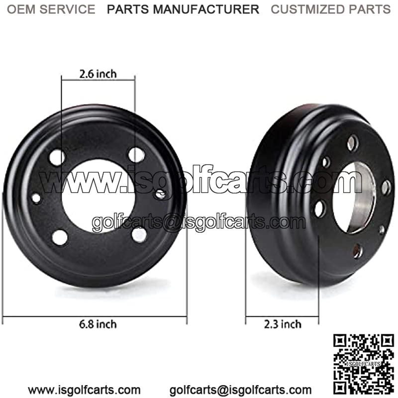 The brake drum fits Yamaha G1-G22 G29 1978-up G&E Models. OEM Part# JU0-G6521-00-00, J17-46521-00, J55-G6521-00, J55-G6521-01, JU0-G6521-00, J55-G6521-19-00. If the brake hub and the half-shaft spline worn out too much, they must be replaced together, just change one type will cause both of them to be damaged quickly. Heavy duty, high quality.