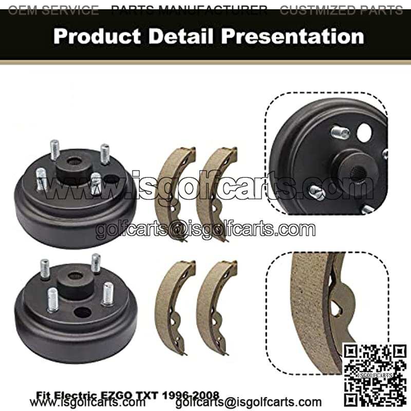 Golf Cart Brake Drums & Brake Shoes Deluxe Maintenance Kit for Electric EZGO TXT 1996-2008 Replace OEM# 19186G1 70794G01 70795G01 27943G01 27945G01