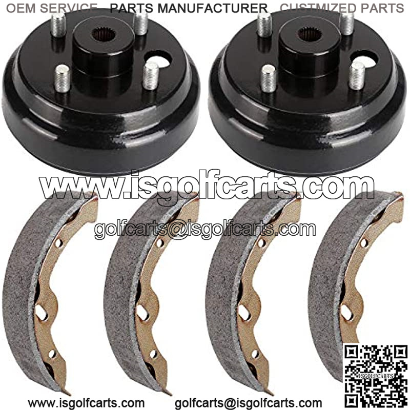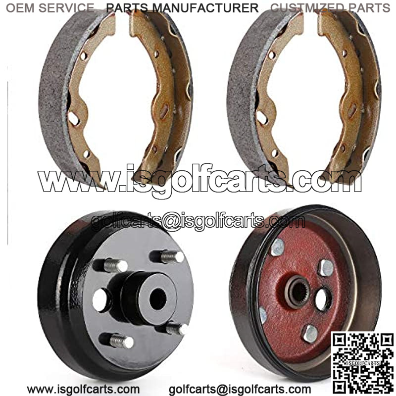 Golf Cart Brake Maintenance kit to fix your EZGO ‘s brake job ; Complete Brake Shoe Set of 4 (Replaces OEM Part Number: 70794G01, 70795G01, 27943G01,27945G01); Set of 2 Rear brake drums with 4 lug studs and a splined center hub,Fits 1982-Current Electric & 1982-1993 2-Cycle Gas E-Z-GO Models (Replace EZGO OEM# 19186G1); Factory oem replacement,meet or even exceed the manufacturer’s original equipment specifications; Kindly Note: Please carefully check your own drum’s Size&OEM Part NO, our drum center hole diameter is 0.8″ with 24-tooth spline,if you received wrong (big)size drums,pls directly contact us to replace.
