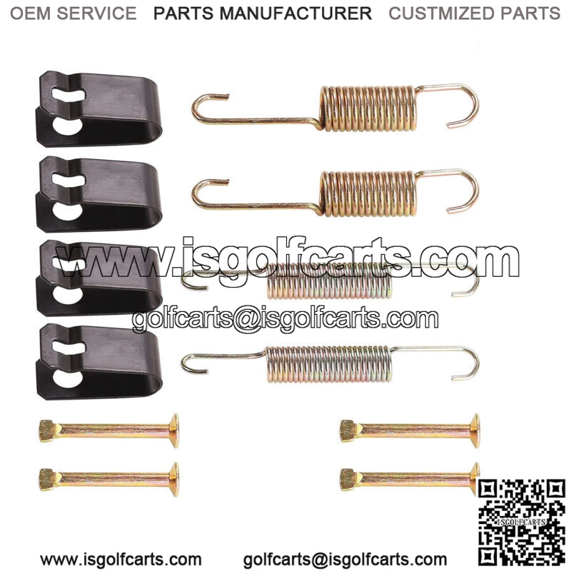 Golf Cart Brake Shoes Spring for Club Car DS Precedent 1980-up 1018163-01,1011466- Golf Carts Brake Shoes Spring Kitfor Club Car DS &Precedent golf carts 1980-up carts.- Club Car brake shoes spring fits on both passenger and driver side brake assemblyaccessories.- Club Car Brake shoes spring Replaces Club Car OEM# 1018163-01, 1011466, After Market #s 4324, 4333, 5162, 5219.- 2 Pack Brake shoes spring kits required per cart, High quality, durable and long lasting.- Golf Cart brake shoes spring kit Includes: 4* Brake Shoe Clamp Springs, 4* Brake Shoe Hold Down Pins, 2* Bottom Brake Shoe Spring, 2* Top Brake Shoe Spring.