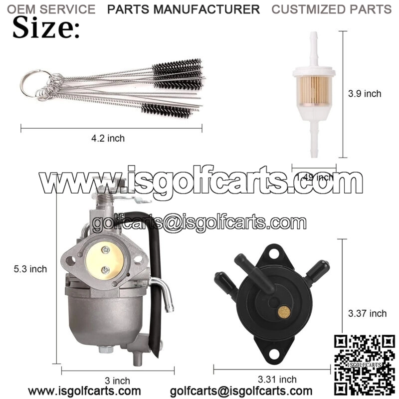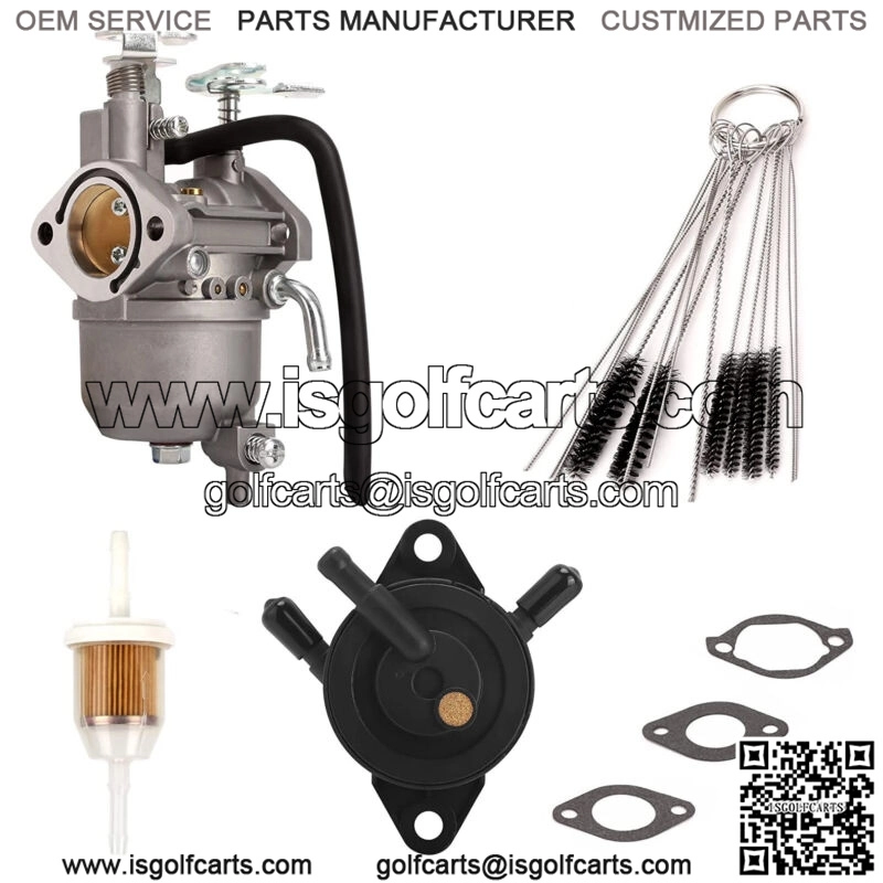 Golf cart Carburetor Fuel Pump Kitfit for EZGO golf cart with 13 HP Kawasaki Engine- Fits EZGO RXV 2008-upgolf cart, – Fits for EZGO TXT 2010-2015golf cart, – Fits for Valor 2010-2014 golf carts,- This EZGO carburetor fuel pump kit replaces OEM part #: Carburetor 607954, fuel pump 602061, fuel filter 72084G01.- This golf cart accessories package includes: 1X carburetor 607954, 1X fuel pump, 1X tube, 1X fuel filter, 3X gaskets, 1X carburetor cleaning brush.- Before ordering, check the Part Number to make sure the carburetor matches your cart model.