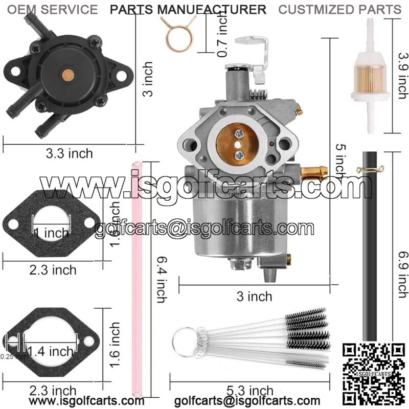 Golf Cart Carburetor Kit for Club Car DS Precedent Turf Carryall 1996-upKawasaki FE350 Engine – Golf Cart Carburetor kit for Club Car DS, Precedent, Turf, Carryall models 1996-up with a OHV FE350 engine;- Club Car Carburetor replaces part numbers: 1016441-01 1018059-01 1019059-01 1035245-01 1016478;- Gasket replaces part numbers: 1016438 1016439 1016440 1016441;- Fuel pump replaces part numbers: 72873G01;- Package includes: 1x carburetor, 1x Fuel filter, 1x Fuel pump, 2x Mount gaskets, 2x fuel lines, 1x carburetor cleaning brush, 1x hose and 8x clamps.