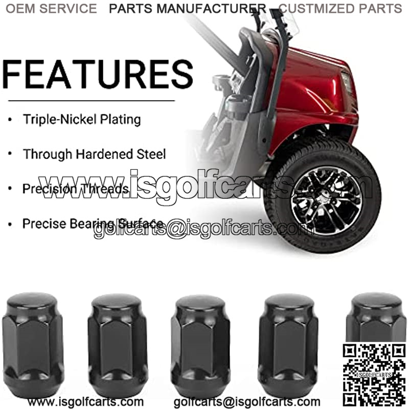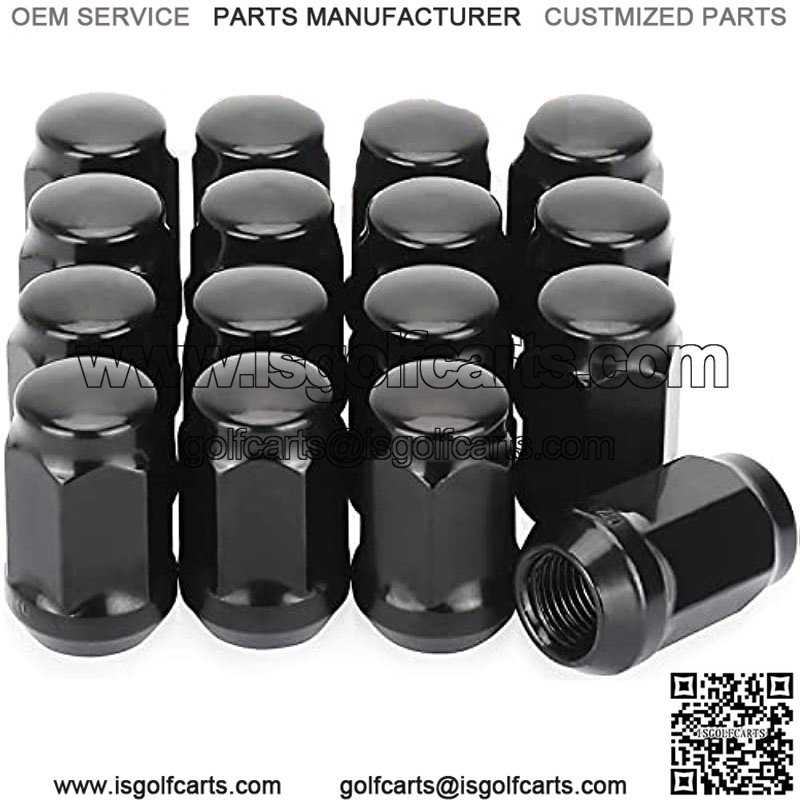 Golf Cart Chrome Wheel Lug Nut, 1/2-20 Size for EZGO & Club Car (16 Pack Black Closed End Lug Nuts)