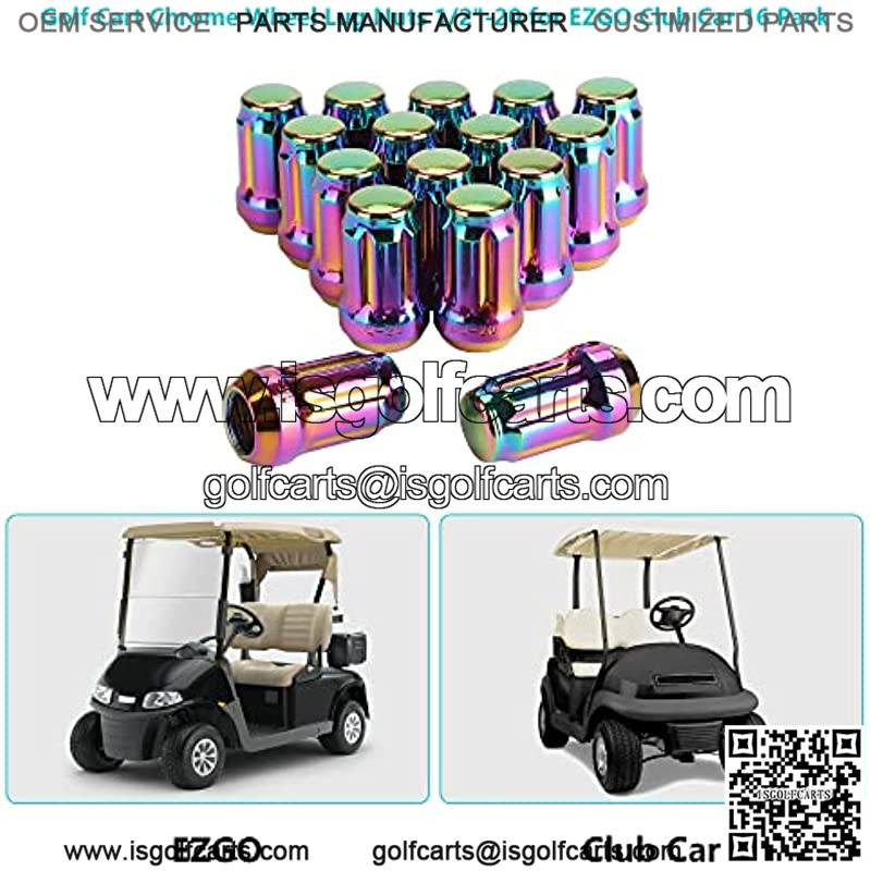 Golf Cart Chrome Wheel Lug Nuts 1/2″-20 for EZGO Club Car (16 Pack)