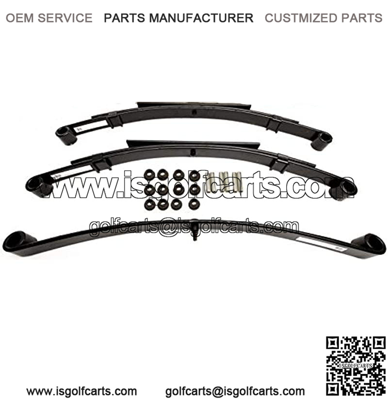Complete Front and Rear Heavy Duty Leaf Spring Kit. Will fit 1981-Up Club Car DS gas and electric models (will not fit Precedent or Carryall models).