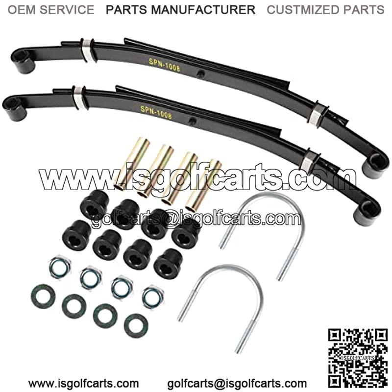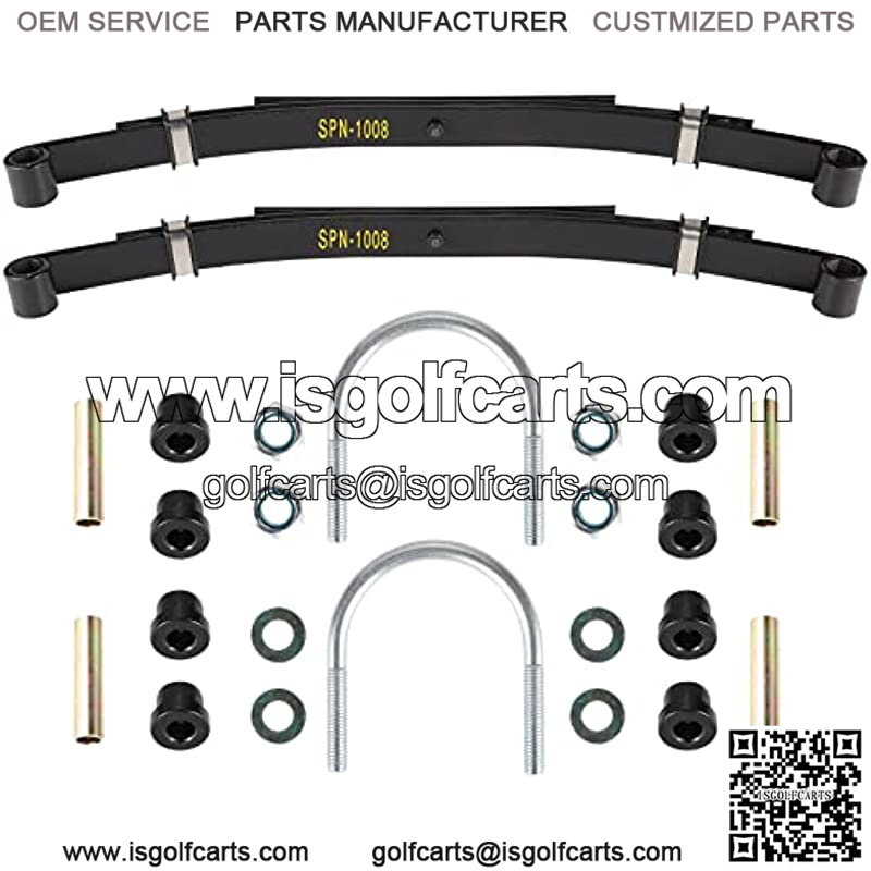 Product Description Brand: YUWEIDG0769 Model: Golf Cart Rear Heavy Duty 4-Leaf Springs Kit With Bushings & Sleeves U Bolt Replace OEM Part Number: 1014675 Apply for: 1981-up gas and electric golf cart club car ds models Dimension: You can find the more size detail from description picture Function: It could make the back sit higher and carrying more weigh, make the ride much smoother for the people in the back Package List 2Pcs* 4 Leaf Rear Leaf Springs (OEM# 1014675) 2Pcs* Bushing (OEM# 1012303 ) 8Pcs* Rubber bushings (OEM# 1015583) 2Pcs* U bolt (OEM# 1014902) 4Pcs* Lock nut,7/16-14 Nylon (OEM# 1014555) Warranty 1. One month free return, replacement or maintenance if any quality problem within 1 year 2. If there any issue with it, don’t hesitate to contact us via Amazon message , and we will response and solve it within 24-48 hour