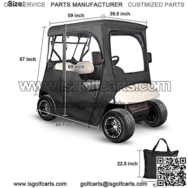 Golf Cart Deluxe Enclosure for EZGO TXT 2 Passenger, 4-Sided Clear PVC Window Rain Cover with Zipper Entry, Black