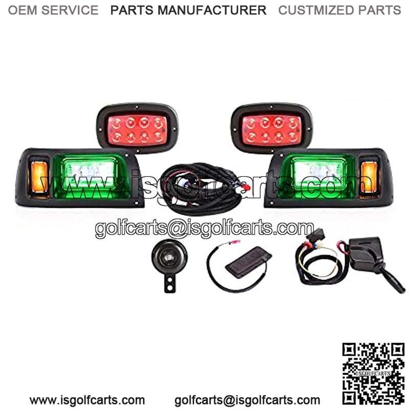 Golf Cart Deluxe LED Headlight &Tail light Kit for Club CAR DS, RGB Music Daytime Light, High/Low Beam Turn Signal Light Hazard Brake Light and Horn, 16V-80V Wide Voltage Input
