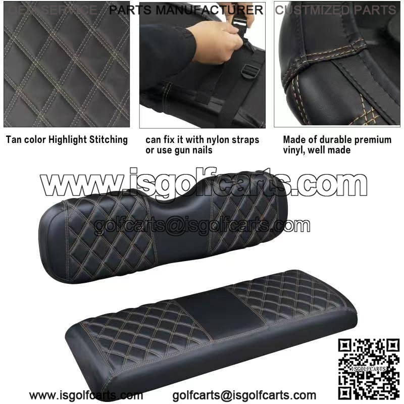 Golf Cart Seat Covers are hand stitched and made of high quality marine grade vinyl, resistant to abrasion and UV exposure, no need to worry about fading and cracking, providing great comfort for rear seat passengers during your daily driving, Can better protect your seat, better use after installation