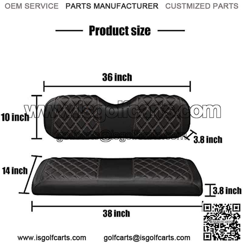 Golf cart back seat cover ,This product contains1x Rear Seat Lean Back Cover(about 36 x 10 x 3.8 inches) and 1x Rear Seat Bottom Cover(about 38 x 14 x 3.8 inches).fits the normal seat cushions of the aftermarket rear seat kit.Not suitable for thicker luxury cushions