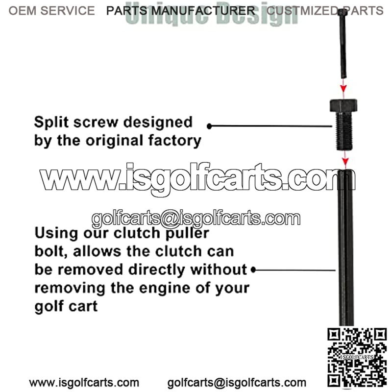 [Unique Design]: Split screw designed by the original factory. Using our clutch puller bolt, allows the clutch can be removed directly without removing the engine of your golf cart. Note: Please apply some lube oil on the clutch and puller tool before use it.