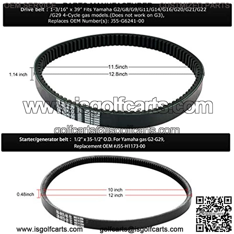 Golf Cart Drive & Starter Generator Belt for G2-G29 4-Cycle J55-G6241-00-00, JN6-H1173-00 G16 to G22 & Drive 2012.5 & Newer