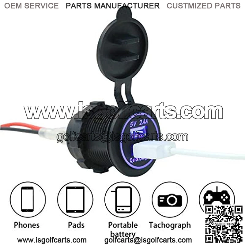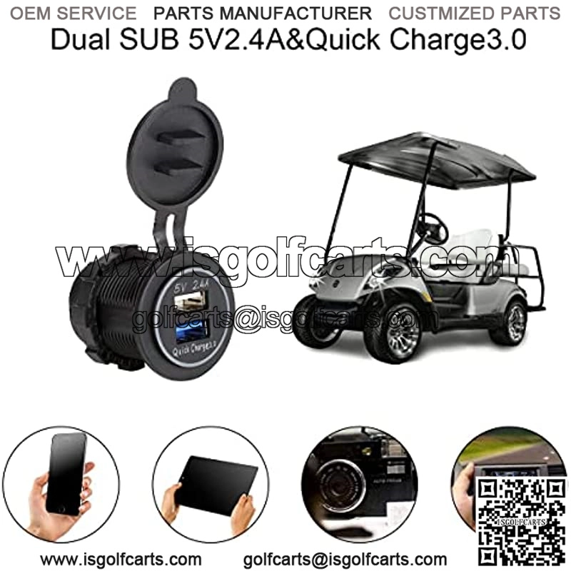 Golf Cart Dual USB Charger/USB Port/Quick Charge 3.0 USB Outlet Universal Fit EZGO Club Car and Yamaha, Also Fit Motorcycle,RV, ATV,Boat etc.12V~24V Input