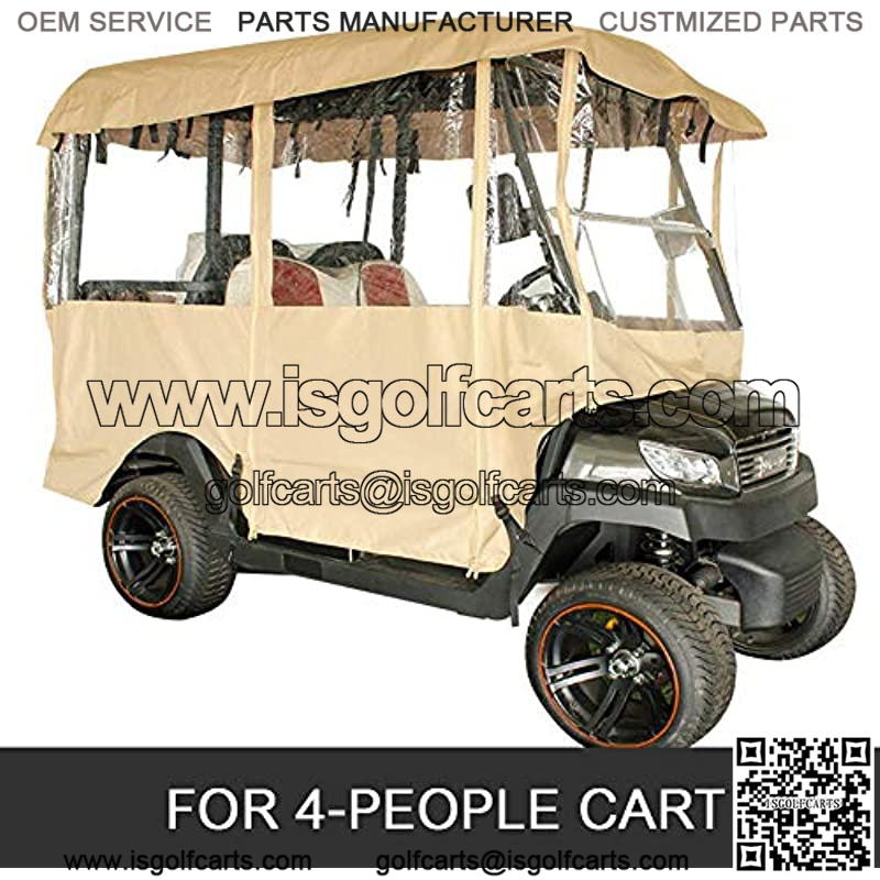 Fits 4 Passenger: Designed for most 4-seat golf cart. As long as your golf cart is 200cm/78.7in in length, 110cm/43.3in in width, 150-165cm/59-65in in height. This adjustable driving enclosure is made for you.