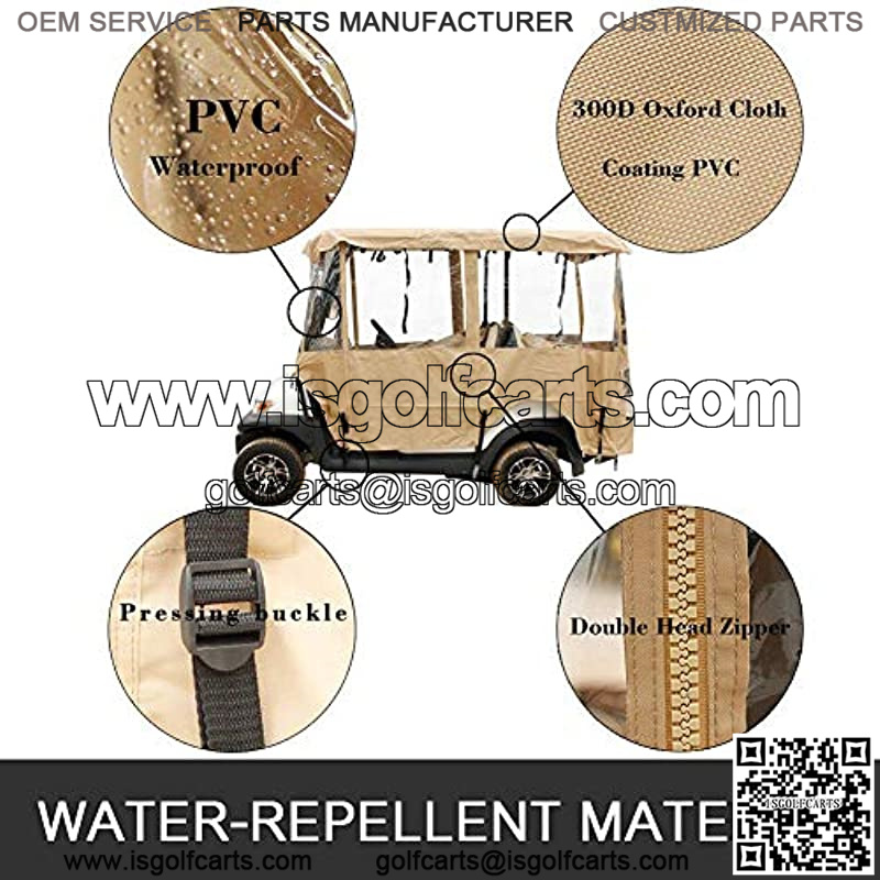 Premium Material: Constructed of 300D Oxford cloth with PVC coating, PVC window, and #10 Resin Zipper, it is durable, against wind, sunshine and rainwater. Can keep the cart inside dry and clean, keep people inside warm. Let you enjoy golf with no worry.