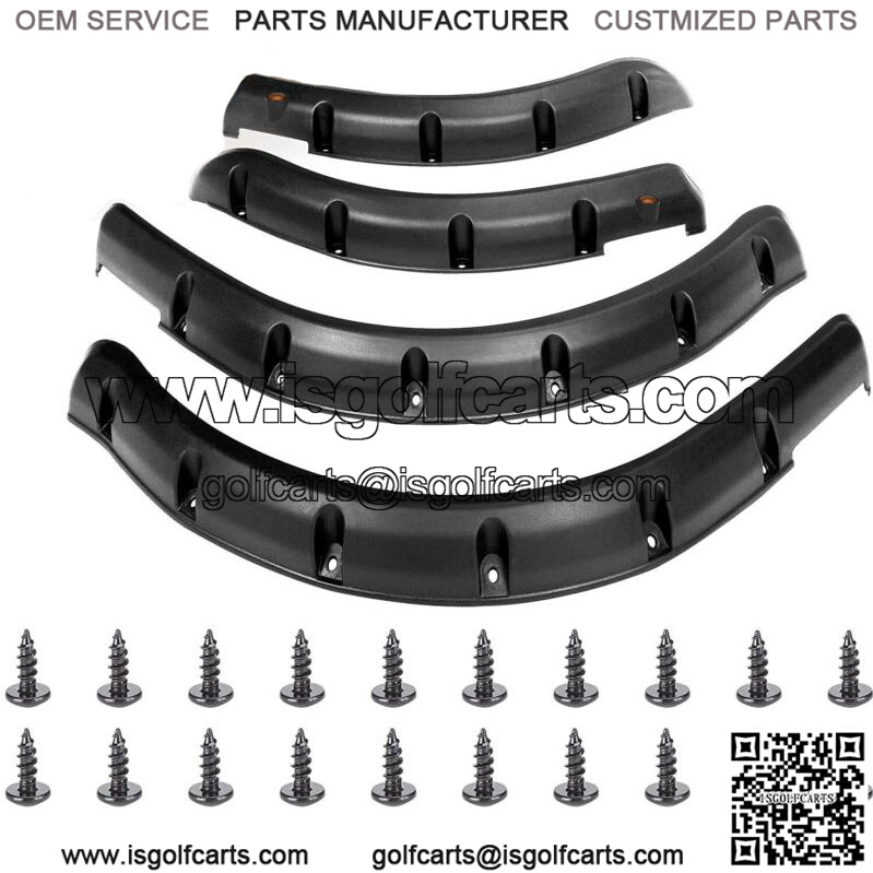 Golf Cart Fender Flares Front and Rear For Club Car DS 1993 up , Set of 4- Golf cart fender flares for Club Car DS 1993-up gas & electric models, set of 4, including 2 front and 2 rear fender flares;- Club Car DS fender made of durable injection-molded black plastic with textured finish, comes with metal hardware, give your cart an aggressive, off-road look;- golf cart fender flares protects passengers from dirt, water, mud, rocks and other debris that can be kicked up by tires;- Round amber reflectors on front fender flares for enhanced safety, mini marker lights(not included) can be added inside the reflectors;- Easy and quick installation, drilling is required on the golf cart. If you have aftermarket rocker panels, you may need to modify these to fit your cart;- Package: set of 4, including 2 front and 2 rear fender flares.