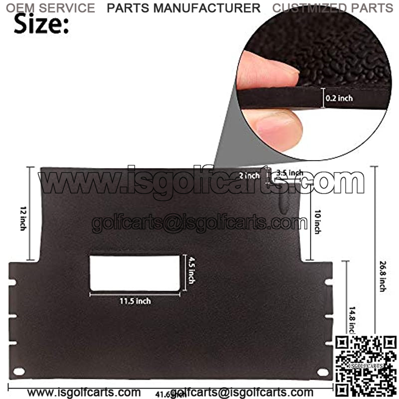 Pre-cut full coverage factory floor mat for Club Car Precedent Custom fit Club Car Precedent 2004-up gas and electric Replaces OEM part#:1025048-01, 1039264-01, FL-14315 Rugged non-slip rubber mat, 5 mm thick