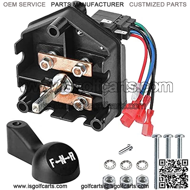 48 Volt forward and reverse switch assembly fits for Club Car DS golf cart 1996-up. Replaces OEM#: 1017530-05, 1018530-05, 1012987(Handle). Package Including: 1 x forward and reverse switch assembly, 1 x handle, screws and nuts kit. The Forward and Reverse Switch Assembly is a must if you have a high amperage controller or upgraded motor. Easy installation & 1 year warranty.