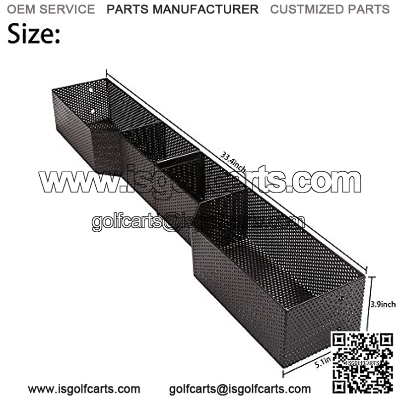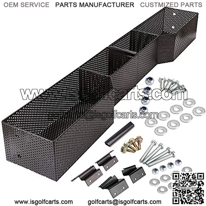 Metal mesh front inner basket for Club Car DS & Precedent 2001-up golf cart Made of sturdy metal steel with rubberized coating, greatly enhanced rust resistance and durability, environment friendly and never have odd smells You can store your glasses, rangefinder, cards, phone, etc. Reach them easily and conveniently Size: 33.4*5.1*3.9 inch Kit includes basket & model specific mounting brackets