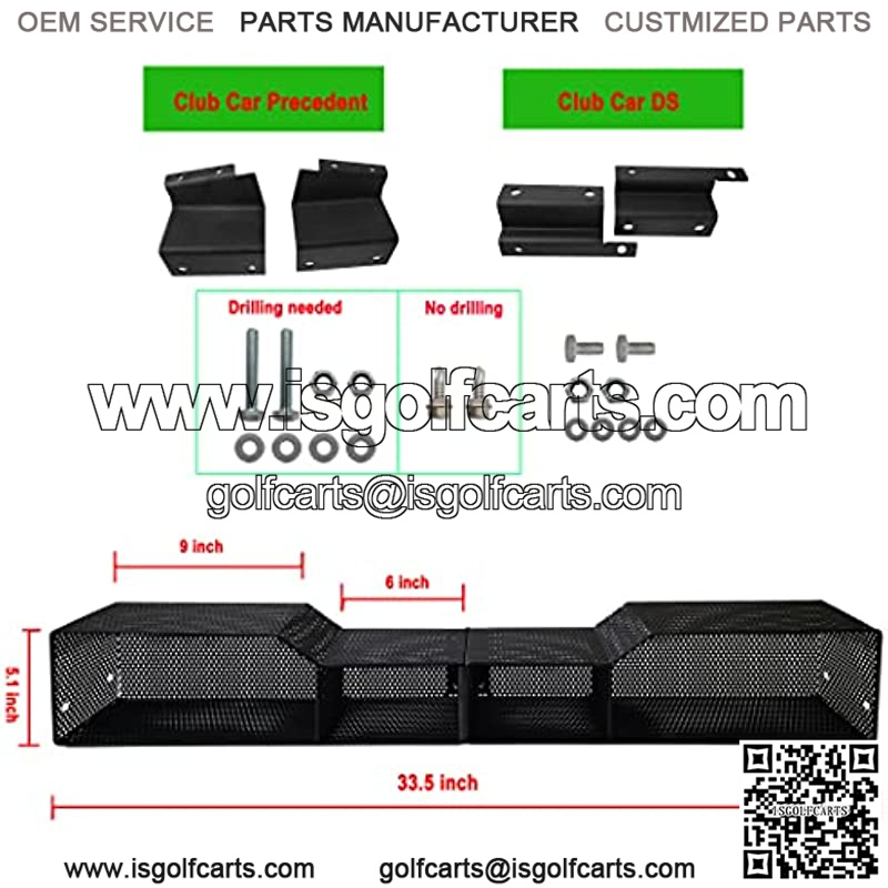 Package include: A Storage Basket and 2 sets (Club Car DS & Precedent) of installation accessories, just choose the one suitable for your car. It’s easy to mount storage rack to your carts.