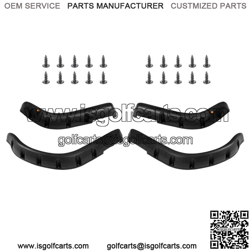 Golf Cart Front Rear Fender Flares for Yamaha G14, G16, G19, G22 Cart Wheel, Set of 4- Golf cart fender flares for Yamaha G14, G16, G19, G22 gas & electric models, set of 4, including 2 front and 2 rear fender flares;-Yamaha fender flares made of durable injection-molded black plastic with textured finish, comes with metal hardware, give your cart an aggressive, off-road look;- Golf cart Yamaha fender flare set Protects passengers from dirt, water, mud, rocks and other debris that can be kicked up by tires;- Round amber reflectors on front fender flares for enhanced safety, mini marker lights(not included) can be added inside the reflectors;- Easy and quick installation, drilling is required on the golf cart. If you have aftermarket rocker panels, you may need to modify these to fit your cart.