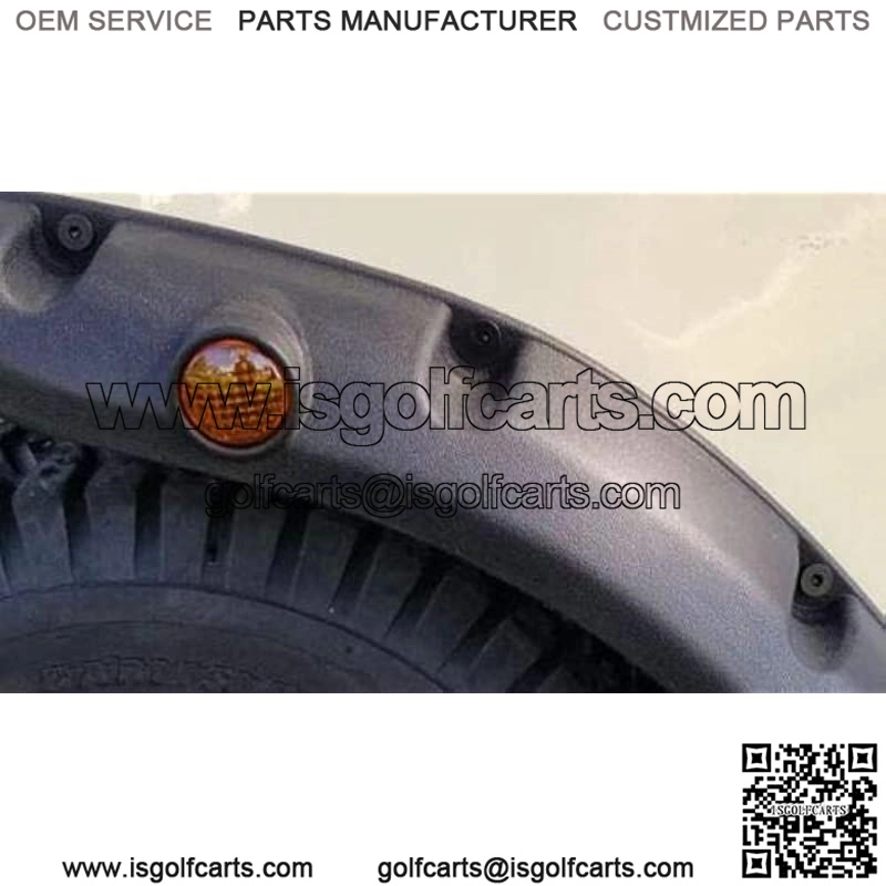 Golf cart fender flares for Yamaha G14, G16, G19, G22 gas & electric models, set of 4, including 2 front and 2 rear fender flares Made of durable injection-molded black plastic with textured finish, comes with metal hardware, give your cart an aggressive, off-road look Protects passengers from dirt, water, mud, rocks and other debris that can be kicked up by tires Round amber reflectors on front fender flares for enhanced safety, mini marker lights(not included) can be added inside the reflectors Easy and quick installation, drilling is required on the golf cart. If you have aftermarket rocker panels, you may need to modify these to fit your cartProduct Description Golf Cart Front Rear Fender Flares for Yamaha G14, G16, G19, G22, with Metal Hardware, Set of 4Type: Golf Cart Fender Flares Splash GuardCustom Fit: Yamaha G14, G16, G19, G22 gas & electricManufacturer: Made of durable high-strength injection-molded black plastic with metal screws & nuts accessoriesPack