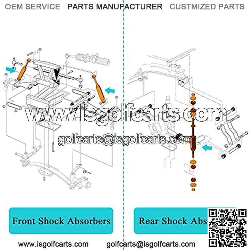 ?? Shock Absorbers Kit ??The front and rear shock absorbers are used together to make your golf cart ride smoothly, making passengers comfortable and not feeling bumps easily.