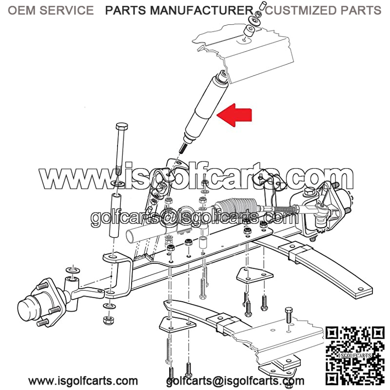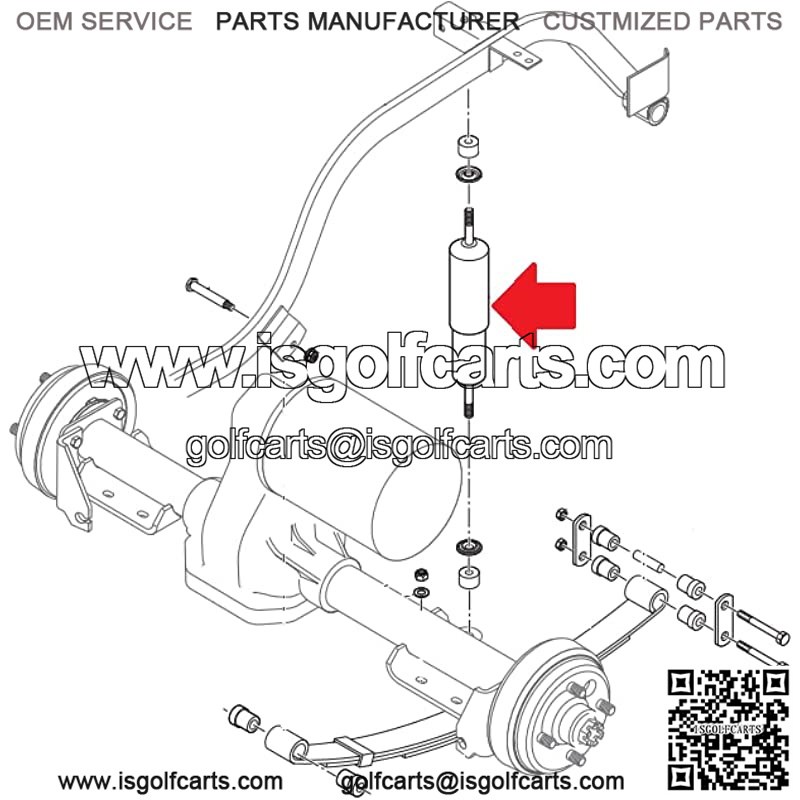 Fits EZGO TXT gas or electric golf cart models 1994-Up. Suitable for front and rear shock absorption. This listing is for a pair (2 shock absorbers). Bushings are included.Replaces OEM# 76418-01,Replaces Nivel# 5006