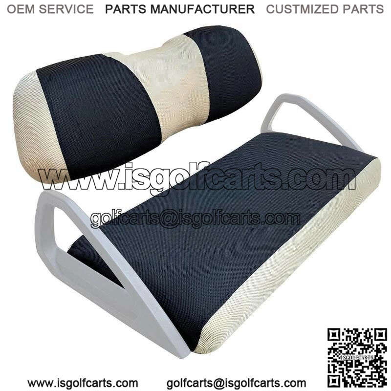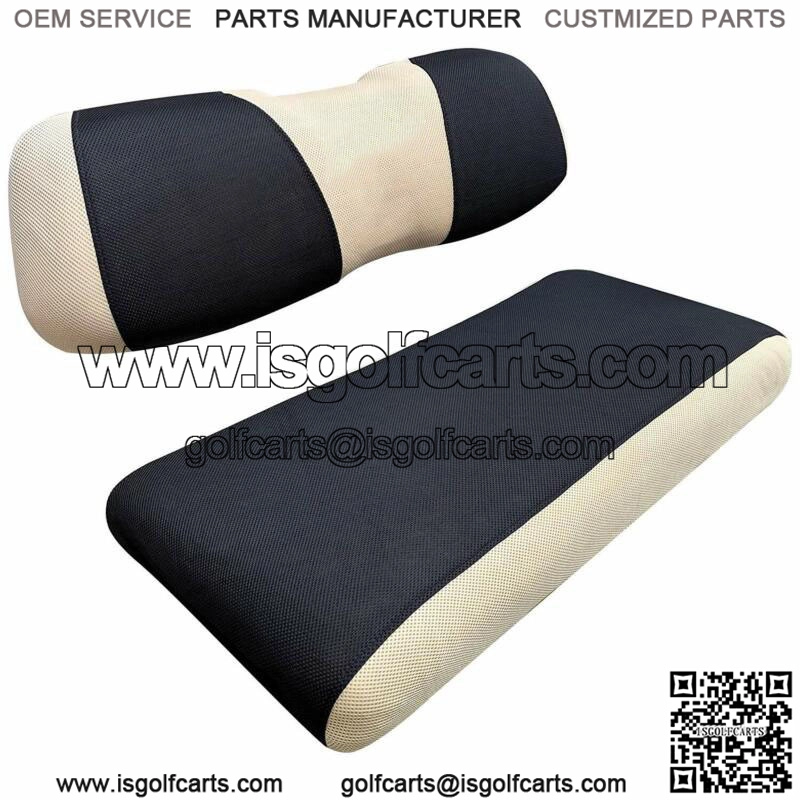 -Golf cart seat cover perfect fit for most front/ rear seat for Club Car Precedent &Yamaha carts FRONT seat or Rear Seat (when the size of your rear seat same as front seat, then can take L size, otherwise will take XS size for rear seat), Not for EZGO TXT RXV golf cart;- Golf cart seat cover size information: Seat cover size:38.61(L)*19.3(W)*3.94(H) inch, Back Cover size: 36.61(L)*10.43(W)*5.9(H) inch;- golf cart seat cover made with breathable washable polyester mesh cloth, keeps the seats cool in the summer heat and warm in the winter;- Golf cart front seat cover extends the life of older or damaged seats, keeps your seat clean, free of dirt, dust, scratches and spills;- In Two-Tone ( Black Beige color seat cover) which looks very stylish, renew your golf cart seat;- Easy to Install and Stay Dry, Toolleadjustable straps and retractable buckle design help you install easily and remove in minutes;- Easy to clean, just throw it in the washing machine and air dry, folds easily for packi