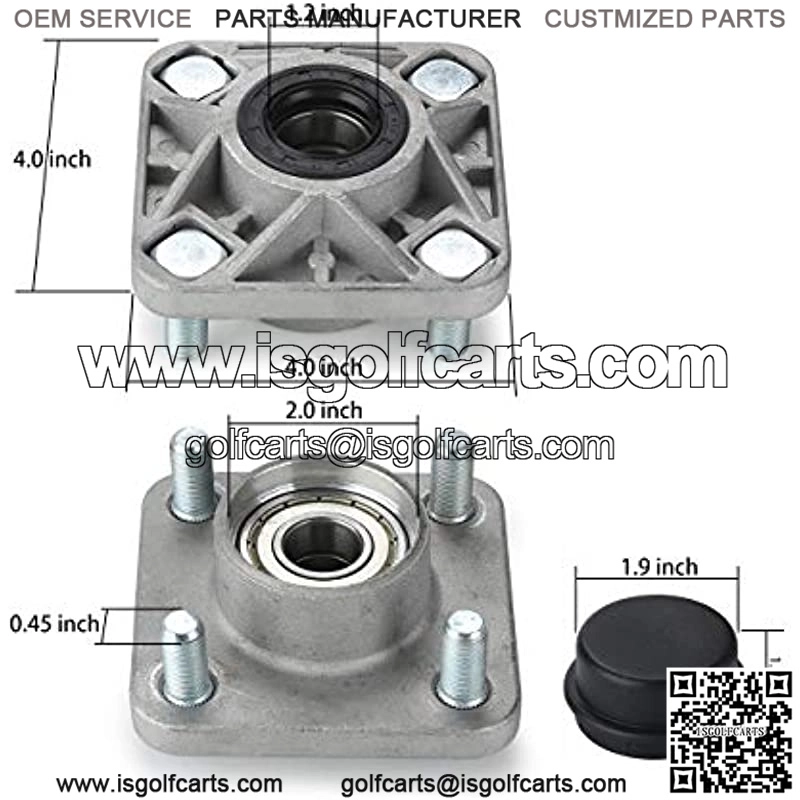 The wheel hub fits for Yamaha G2, G8, G9, G14, G16, G19, G22, G29 g&e golf carts(DOES NOT FIT Yamaha G1). This Yamaha G29 front wheel hub OEM Part# J38-W2511-00 JG5-WF511-00 JG5-WF511-10-00(5057). The wheel hub assembly comes with 2 pcs aluminum hubs, 2 pcs bearings, 2 pcs seals and center caps and 4 lug bolts.