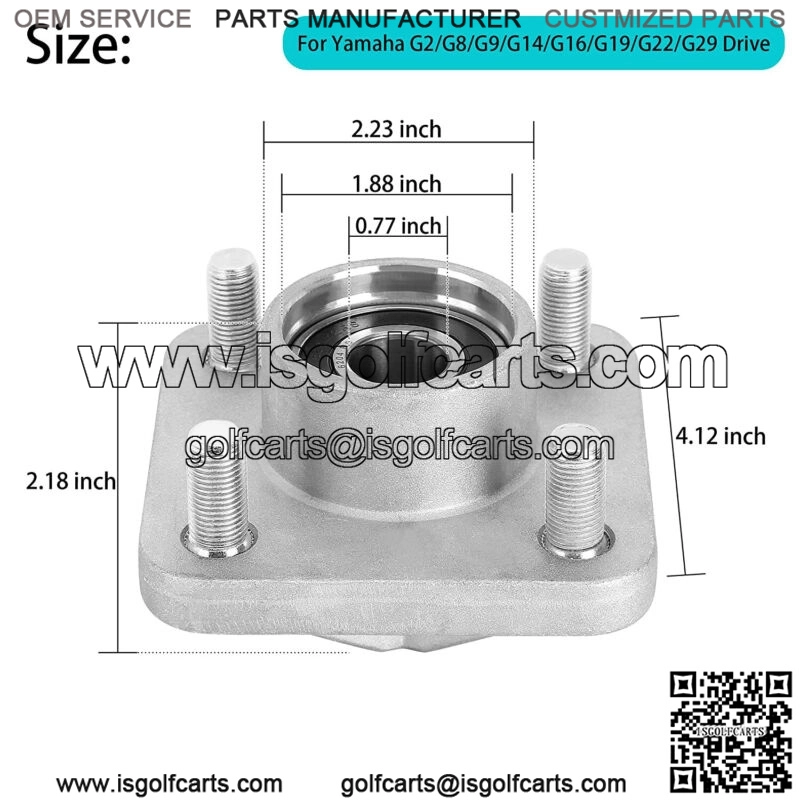 – 2x Yamaha Front Wheel Hub Assembly, Include bearings, oil seals and dust caps.Come fully assembled;- This front hub replacement Fits Yamaha G2 G8 G9 G14 G16 G19 G22 G29 Drive gas & electric golf cart;- Replace OEMpart: JG5-WF511-00, JG5-WF511-10-00, 5057 + 3480 + 3852 + 3872;- Made of high quality aluminum, this golf cart partsaccessoriesmeet or exceed OEM quality standards, 1 year warranty.- Easy to install.- Packet Includes:2 x front hub housing with lugs; 4x bearings; 2 x oil seal;2 x dust cap.
