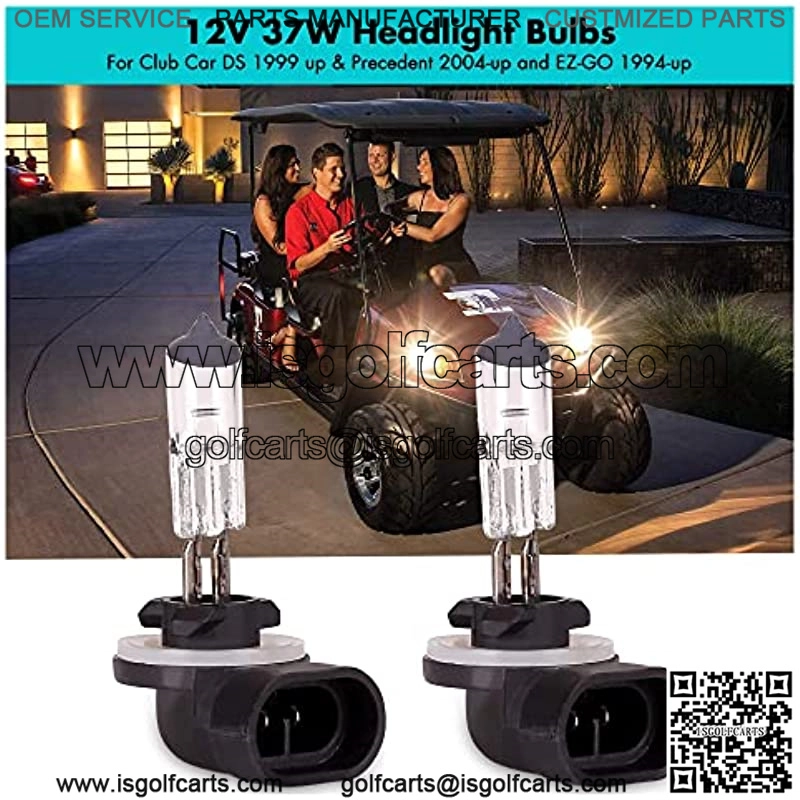 Factory OEM replacement headlights,Give people a clear sight on night driving or foggy/dimly lit conditions; Fits Golf Cart Club Car DS 1999-up and Club Car Precedent 2004-up, OEM# 1019881-01; Fits EZGO models 1994-up, OEM# 74004-G01; Package included 2 pcs 12V 37W Headlight halogen Bulbs; Return&refund Policy Guarantee.If the bulbs arrived in broken condition, please feel free to contact us:Golf Cart anytime, we will do everything to address the issue for you.Who are we is a professional golf cart accessories brand having been concentrating on golf cart accessories (incl.refit parts&upgrade parts)for more than 15 years.We have thousands of golf cart accessories of EZGO, YAMAHA and Club Car;We are still constantly updating&expanding our products.We’re committed to providing high quality products for global customers through standardized production processes, strict quality management and highest standard customer services.If you’re looking for a professional and trustwo