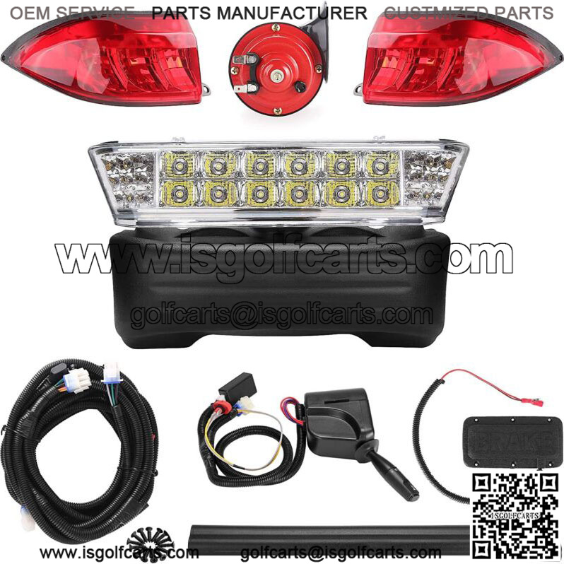 Golf Cart Headlight Taillight LED Light Kit for Club Car Precedent 2004-up 12V- Club Car Precedent LED light kit will come with upgraded wire harness, that one wire harnecontains the wire harnefor the headlight and taillight.- Complete deluxe golf cart led light kit designed for club car precedent golf carts 2004 and newer, – 12V input voltage required, voltage reducer needed (not included) for 14V-80V carts.- Club car precedent light kit included?? ONE Amber Turn Signal LED Headlight with Bumper, TWO Taillight, ONE horn, ONE Wire harness, ONE Fuse wire harness, ONE standard turn signal switch, ONE steering wheel cover, ONE hazard switch, ONE Brake pedal, ONE controller.- Living in a golf cart community and using a cart daily to get around, a suitable set of golf cart lights is very necessary for your golf cart to be legally on the road,and you will get a great night vision and be safe after your golf cart install bright led golf cart lights.- Comes with detail instruction, it will takes about 2-3 hours to install. Please feel free to contact us for any assistance you might need- Offering 1-year limited warranty, free replacement or refund for any defective accessories What you need to know before installingPlease check the product according to the following steps as the first thing after you receive the car light kit. After all parts of the car light work well, then install it on the golf cart: